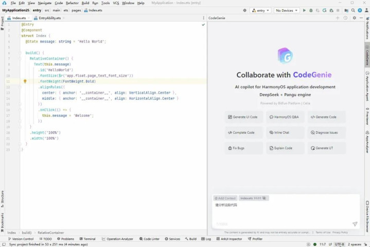 在聊起开发鸿蒙应用的感受时,拥有 iOS 开发经验的梁裕佳毫不避讳地说,虽然 iOS 开发和鸿蒙开发的感觉有点相似,但是鸿蒙系统提供的 DevEco Studio 开发平台和内置的 CodeGenie AI 辅助开发工具好用太多了,更智能、便捷。