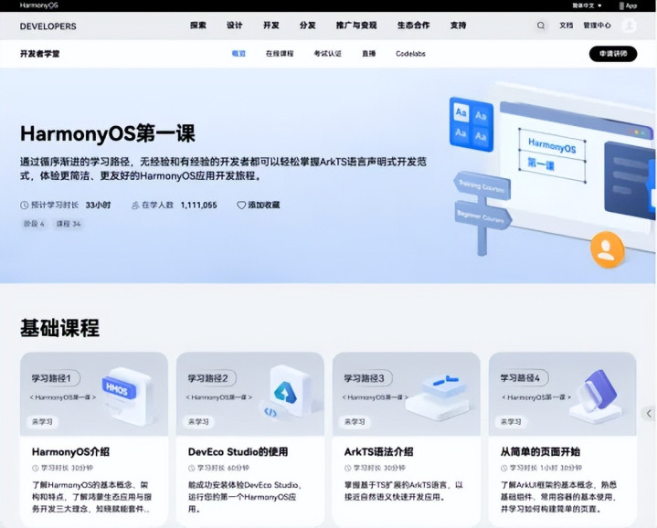 即便你没有任何开发经验,老狐也不觉得这会是阻碍你成为鸿蒙开发者的问题,因为华为还在 HarmonyOS 官网的开发者学堂中,提供了由浅入深、循序渐进的培训课程,即使零经验的开发者,也能轻松开启自己的 HarmonyOS 开发旅程。